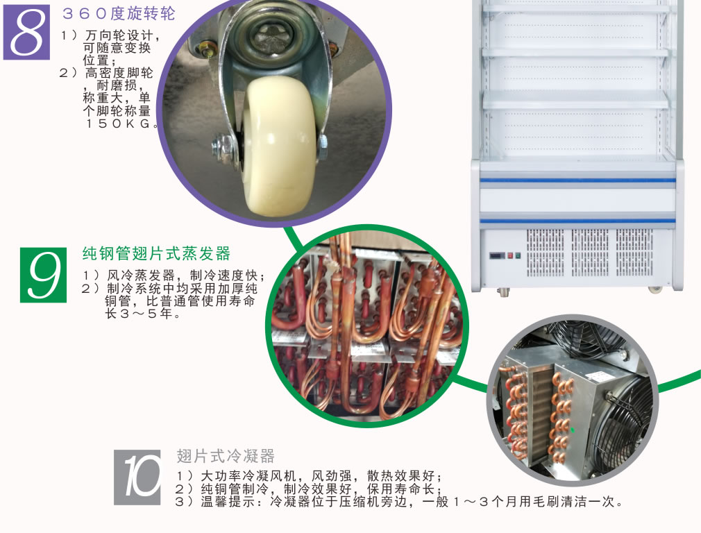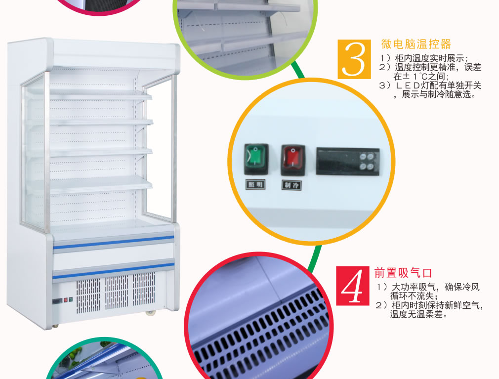 ① 風扇或空調出風口不能正對敞口式冷柜吹風;