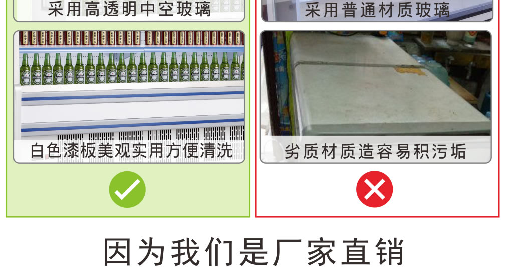 ③ 冷柜內外溫差較大時,遇空氣溫度較大的天氣時玻璃門上有水霧凝結,將溫度調整后即可。