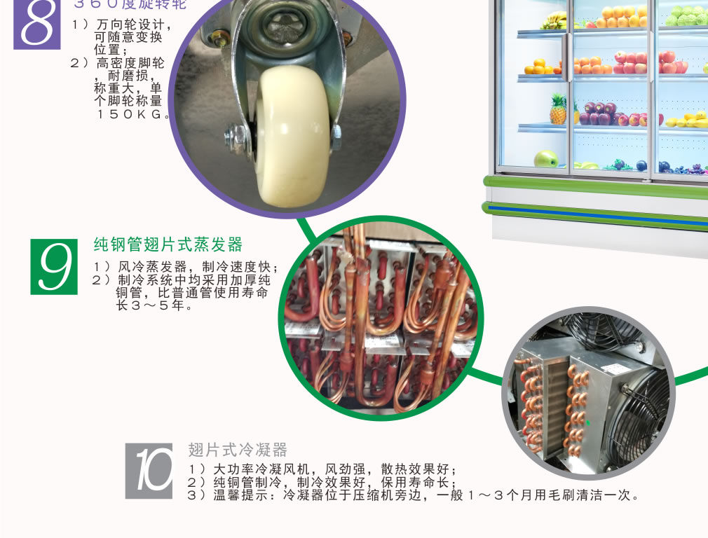 ① 風扇或空調出風口不能正對敞口式冷柜吹風;