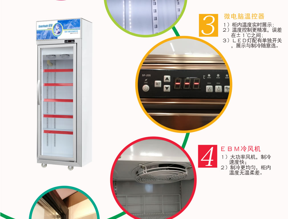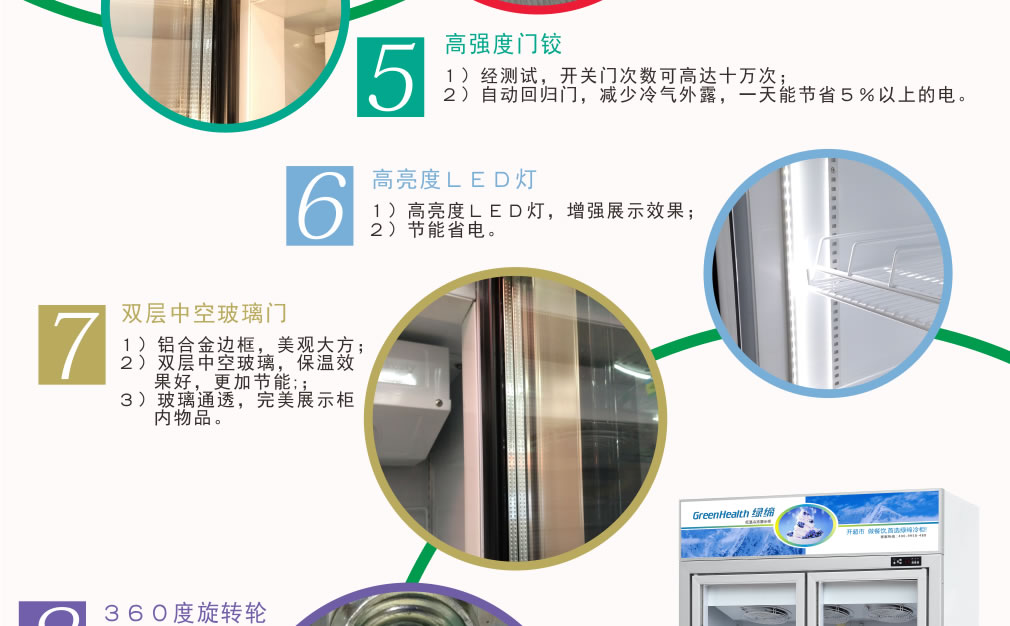③ 冷柜內外溫差較大時,遇空氣溫度較大的天氣時玻璃門上有水霧凝結,將溫度調整后即可。