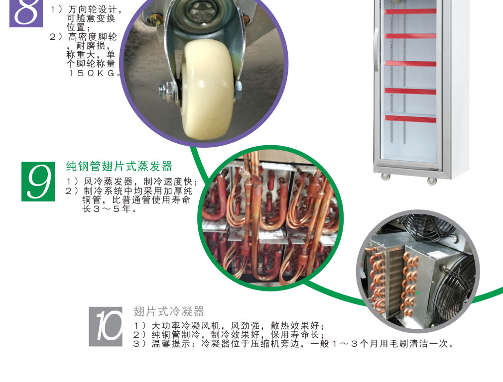 豪華透明燈箱,自由更換畫面,全方位立體展示; 采用中空鋼化玻璃,柜體內均為彩鋼噴涂板,超強抗腐蝕,美觀易清潔;寬氣候帶和寬電壓帶雙寬設計,不受地域、氣溫及電壓影響,