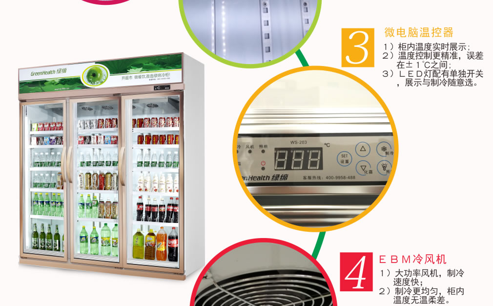 ④ 初次使用時,先空柜運行1小時左右,待柜內(nèi)溫度降下來后再逐步放入商品,盡量少量多次添加,柜內(nèi)不能添加過滿。
