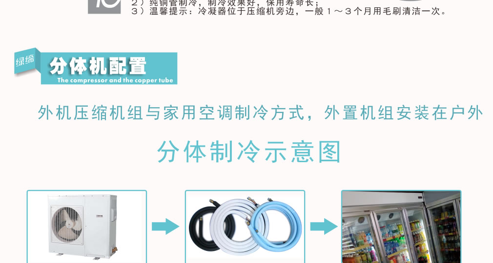 ③ 選擇平整地面放置冷柜,背部離墻保持15~20CM,方便于機組通風散熱;