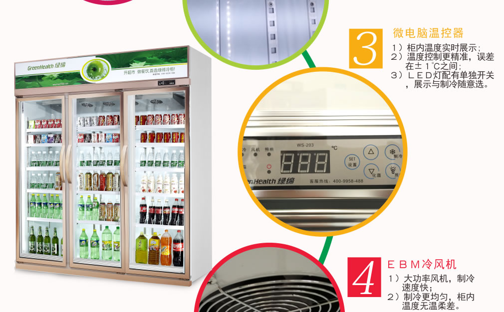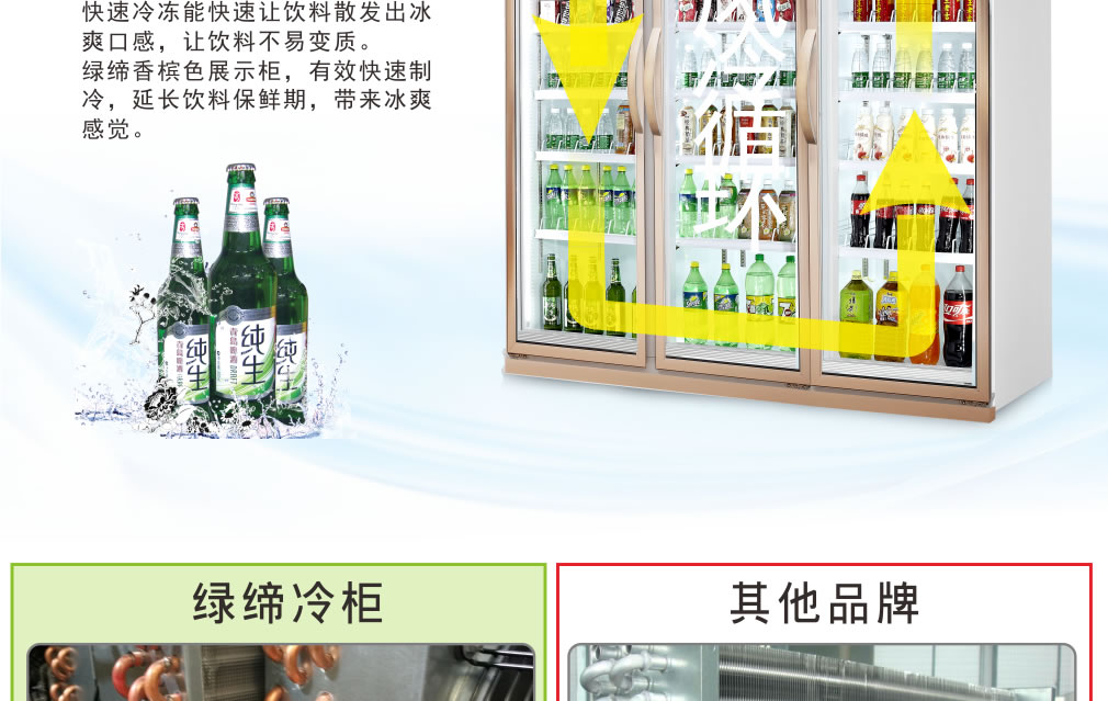 ④ 初次使用時,先空柜運行1小時左右,待柜內溫度降下來后再逐步放入商品,盡量少量多次添加,柜內不能添加過滿。
