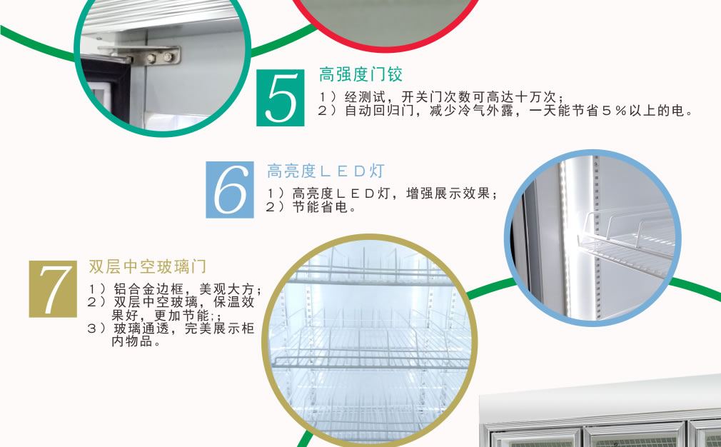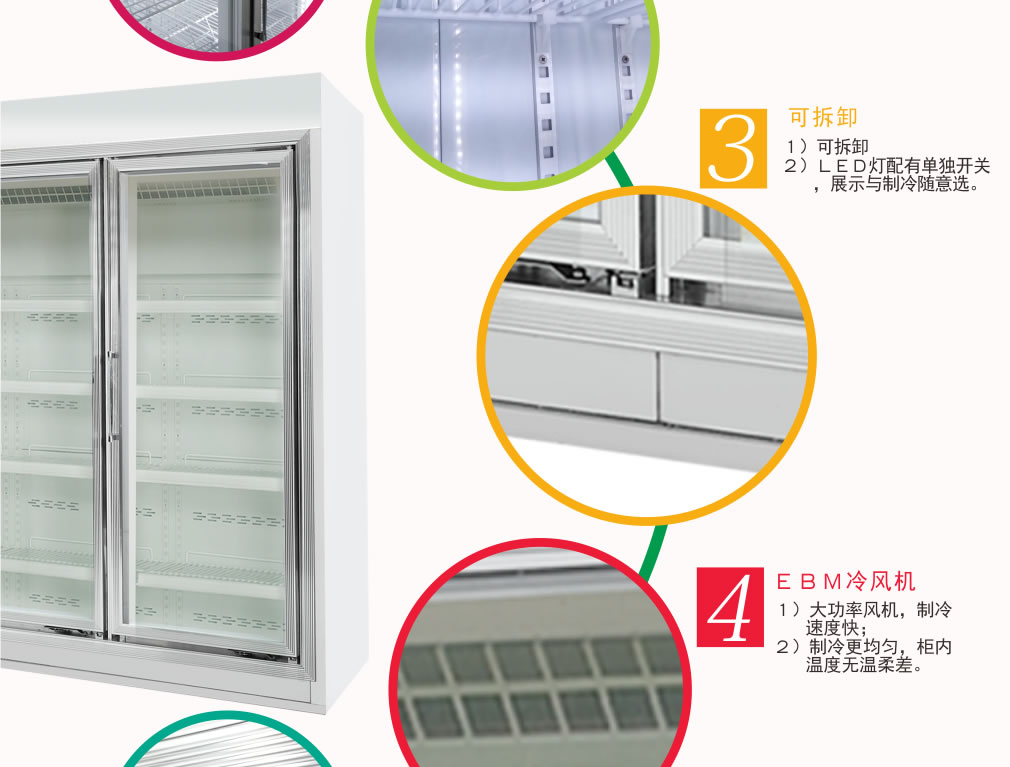 ③ 冷柜內外溫差較大時,遇空氣溫度較大的天氣時玻璃門上有水霧凝結,將溫度調整后即可。