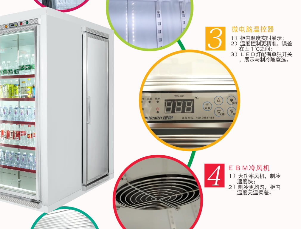 ② 冷柜禁止放在陽光直射的地方,否則因長(zhǎng)期達(dá)不到停機(jī)溫度,影響冷柜壽命;