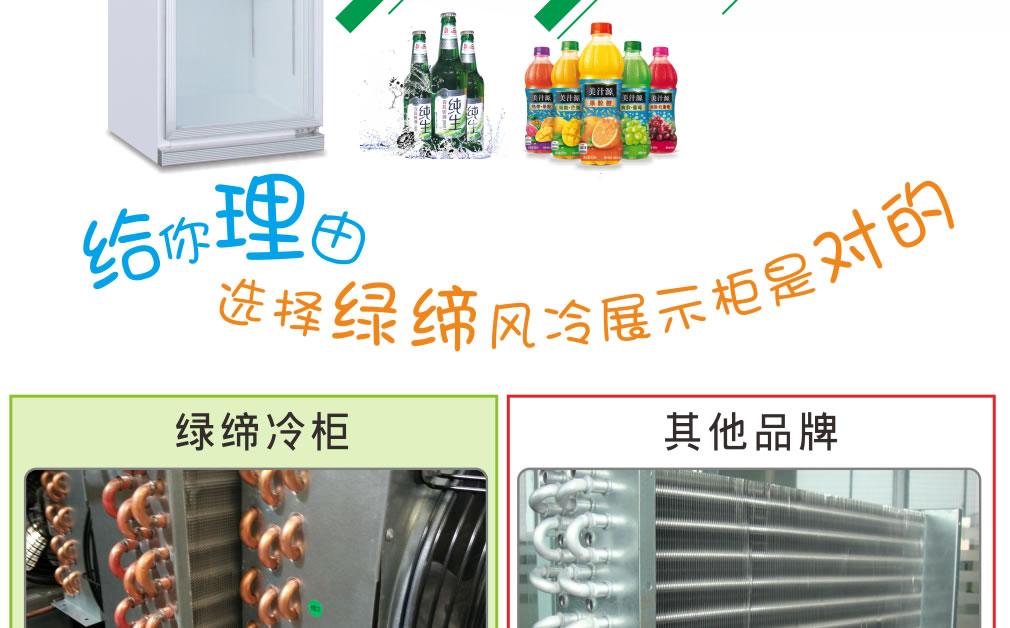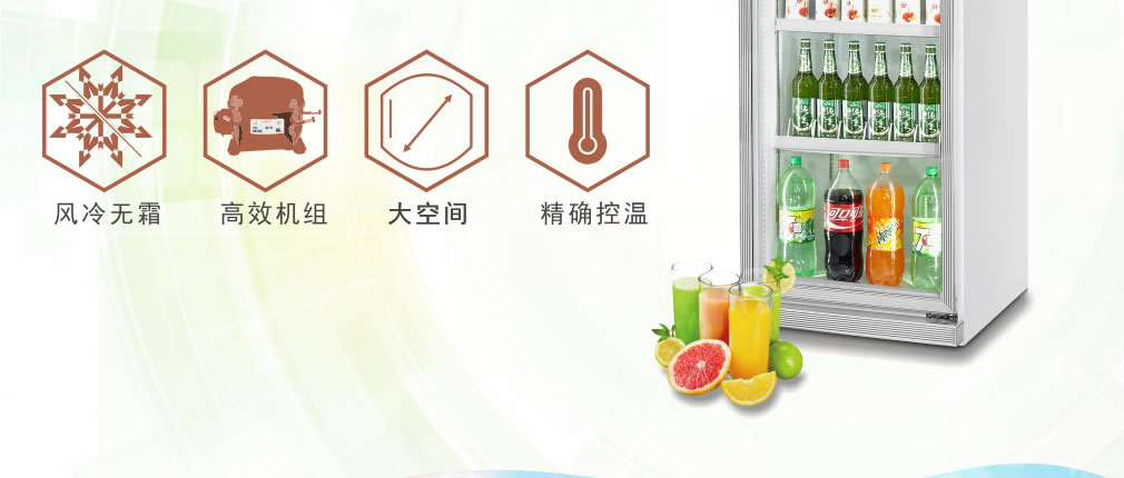 全封閉門封,不銹鋼層架勾,微電腦溫控器,EBM冷風機,高強度門鉸,高亮度LED燈,雙層中空玻璃門,360度旋轉輪,純鋼管翅片式蒸發器,翅片式冷凝器