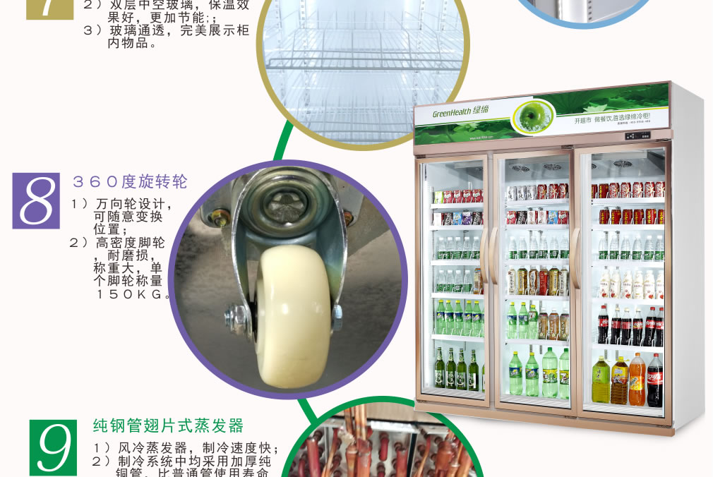 ③ 冷柜內外溫差較大時,遇空氣溫度較大的天氣時玻璃門上有水霧凝結,將溫度調整后即可。