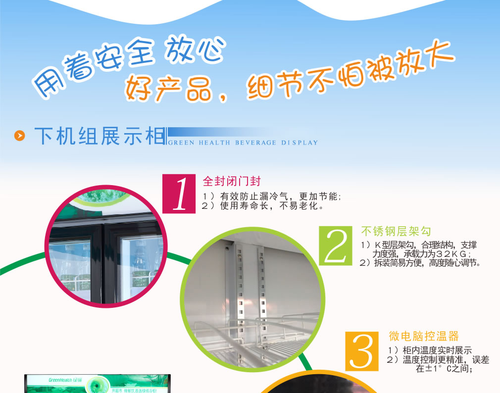 360度立體制冷,制冷更均勻,溫度更下平均,短時間內迅速降溫,確保柜內飲料更冰冷,機座透風設計,讓壓縮機更好發揮制冷,智能面板,溫度一目了然
