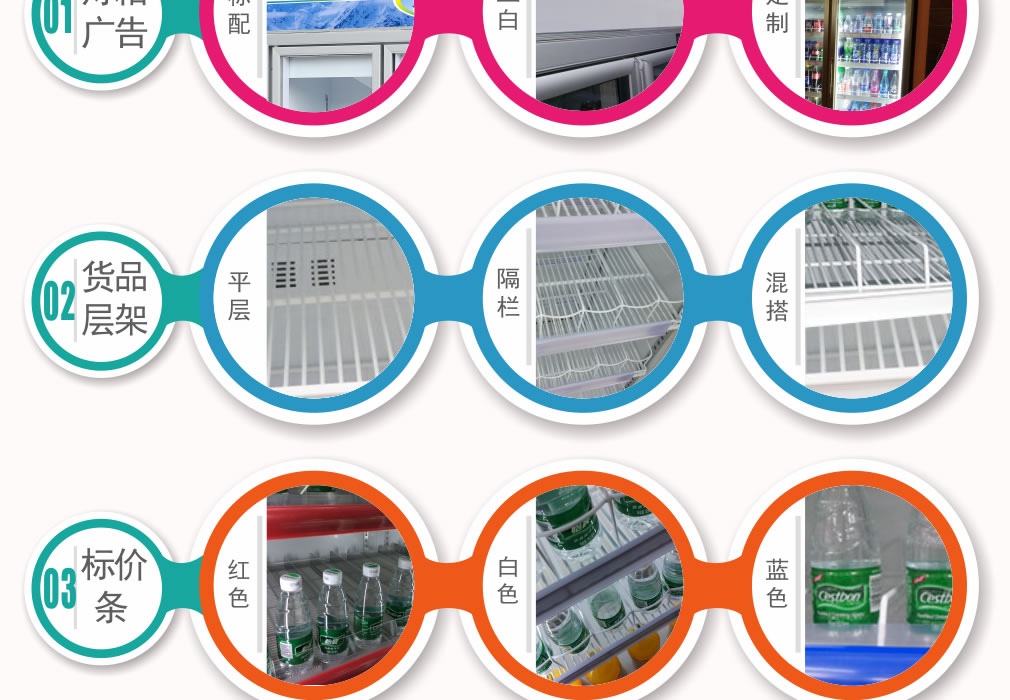 ④ 初次使用時,先空柜運行1小時左右,待柜內(nèi)溫度降下來后再逐步放入商品,盡量少量多次添加,柜內(nèi)不能添加過滿。